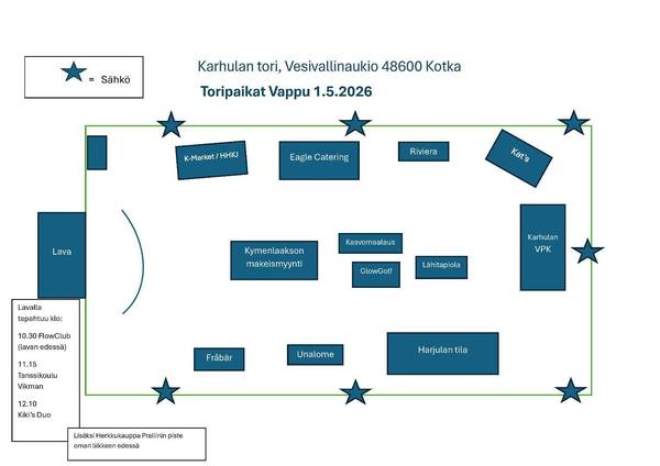 | 20.04.2026 14.30 | Karhulan torin vappu 1.5.2026! |